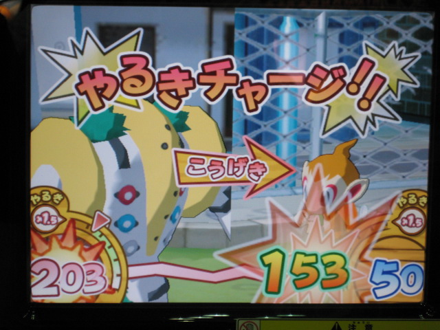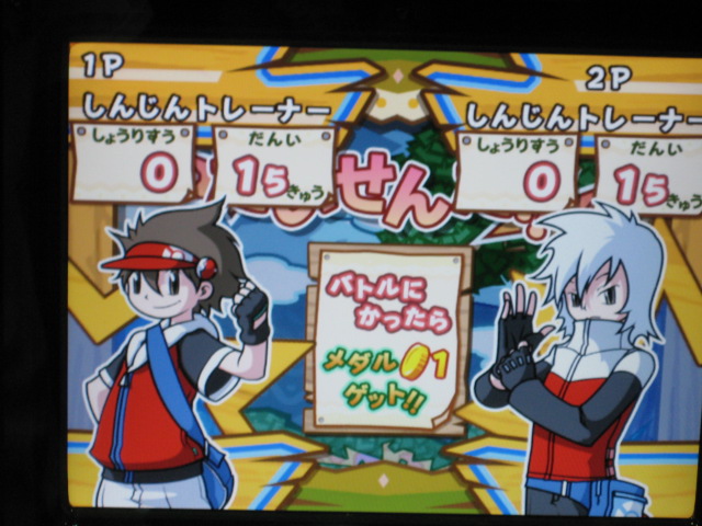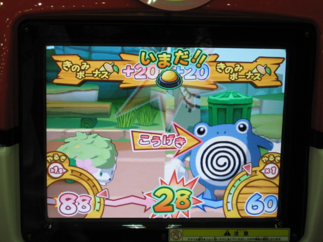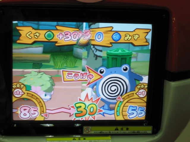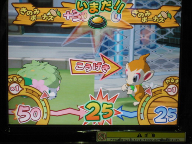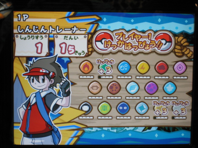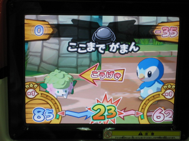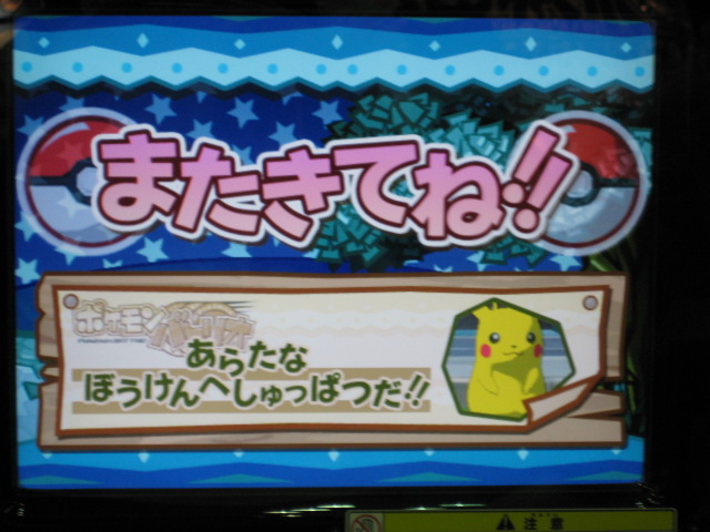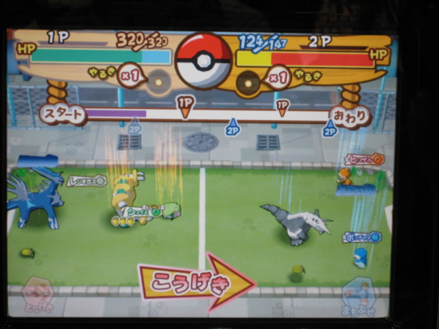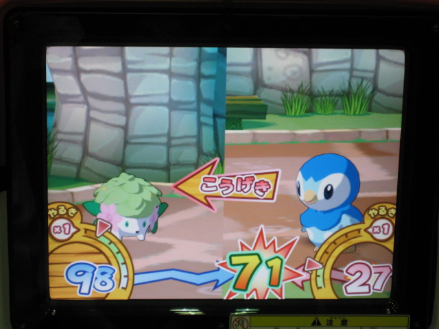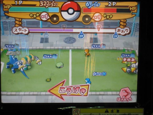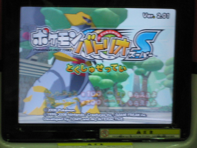 仲間のダネグロ氏とたまたま整理券の時間が違ったので、お互いに撮影するという形に。 おなじみ、筐体上部の看板が、1弾のものから新しく変わっていました。 初期画面はギラティナ。 ...って。 「とくしゅせってい」って、正式稼動のものとは違うようです。 何処が違うとかはちょっと不明です。(確認すればよかったですね) まずはダネグロ氏のプレイ。 排出されたパックはイノムー。 早速あのパックを使ってみようと。 ちなみに、シェイミのパックは、「ひとりであそぶ」を選択して「かちぬきバトル」選び、シェイミのパックだけスキャンして決定ボタンを押すと、レンタルポケモンにギラティナとレジギガスが登場するのだ。 映画さながらのバトルが楽しめるというわけですね。 もちろん、今日は2人対戦のみなので、このスペシャルなバトルは出来ませんでした。 様々な部分が今までとはがらりと変わった感じですね。 さて、注目のバトル画面は...。 全体的に、画面に表示される情報が多く、小さい子供やなれない新人さんには何がなんだか分からない...という状態になりそう。 慣れればなんてことないんでしょうが...。 続いて自分の体験。 出たパックはヒノアラシ。 使用したバトリオは、映画にちなんで、シェイミ、ディアルガ、レジギガス。 空気読めよって!? フィールド上にランダムに現れる木の実を拾っていこう。 ディアルガとレジギガスは強いポケモンですが、移動速度が遅いので、木の実とりに集中していると、フォーメーションを組み損ねてしまう恐れがあるので、不利といえば不利ですね。 やるきチャージは失敗しました(^^; やる事が多すぎです! トレーナーのイラストも代わりましたね、雰囲気が。 あと、「またきてね」の画面の下のポケモンは、ランダムで変わります。 感想 パワーくらべの結果、はじき出される最終数値が今まででは有り得ない、300台とかがノーマルパッククラスでも普通に出ます。 今までは、おたがいのパックを見ただけで勝敗が分かってしまう感じでしたが、不確定要素が多く、そういう意味では、勝敗が分からなくなった感じですね。 変わった点といえば、ハイパーもホロ仕様になってますね。 稼動まで後僅か。 皆さんもバトリオSを試してみよう! PR TrackbacksTRACKBACK URL : CommentsComment Form |