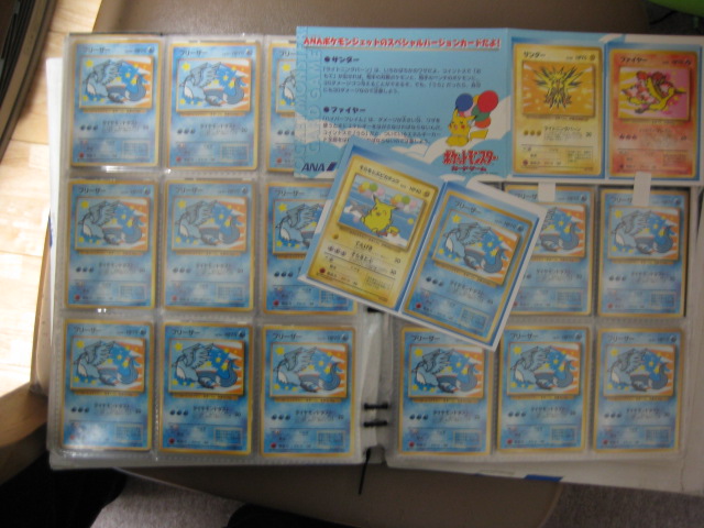昔はプロモ1枚手に入れるのも大変で。 いつだったか、何かのイベントであいつらを持っている人がいて、「なんのカードだ!? めちゃ欲しい!」 速攻調べに調べ、ANAのキャンペーンのカードであることを掴むが、やはり限定なカードということもあって、かなりレートが高かったのを覚えている。 手に入れるにも一苦労という奴で。 「ひかるポケモン」や、当時人気だったトレーナー(サポーター)とかも出したな。 そのころは対戦してなかったので、今なら絶対出さないだろう必須トレーナーも平気で放出してたから、考えれば恐ろしいもので。 それも、マスターズリーグーがなかったから、対戦する機会なんて皆無。 イベント自体、高校生以下が対象。大人なんて付き添い程度のもの。 そういう時代だったんです。 初めてゲットした時は本当、嬉しかったです。 鳥使い故に鳥が好きで、イベントでは「鳥さん」と呼ばれ、いつしか鳥使いの異名がHNになったり。 これ、自称じゃなかったんです。 (現在は「鳥使い」じゃないLANGEです) ちなみに、そのANA3鳥のコレクション。 ...何でこんなに持ってんだ、俺www でも、全部じゃないです。 まだファイルしてないのもあったりします。 こんな感じで、セットで配布されたんですね。 シートつきのも何枚もあります。 このカードの英語版があるということを知る訳ですが、これをゲットするのも大変でした。 「Pokémon the movie2000」で配布されたもので、イラストが違います。 ANAの3枚以上に入手に苦労した物です。 これは、「ポケモンカードweb」で和訳されて逆輸入されます。 (開封のは後年ゲット。当時ゲットした物はもったいなくて開封できなかったという..) ※「web版」はファイヤーのみ掲載 そして、遂に「フロンティアの鼓動」でオリジナルANA版が再販。 苦労して入手したカードだけに、思い入れも大きい。 感無量です。 PR TrackbacksTRACKBACK URL : CommentsComment Form |
