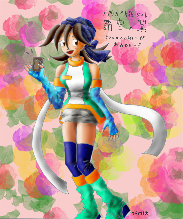 といっても、いつも1回戦のみ。 取り敢えず私が勝ちましたが、賞品(?)というか、覇空の翼の300000hit記念画をもらう。 って、このキャラ誰??? かなりサイズが大きかったので縮小して汚くなってしまいましたが、どうも思いつかない。 多美緒はポケスペ好きだし、そのキャラかな...と。 で、今さっき、古いトレーナーズをめくっていて気付いた。 ミント嬢じゃないか! GB2の!! GB2は結構やりこんだ。 しかし、キャラの選択は常にパークだったので、全くといっていいほど印象になかったのだ。 こんなキャラいたなぁ(^^ 覚えている人はどれくらいいるのだろうか? 本来なら、TOPに掲載したい所なんですが、生憎「覇空の翼」では、TOP画を廃止してしまっている為、載せるスペースがないので、展示スペース作らないと。 ...って、ミントの手に持っているのって...ぎゃざ!? 出番がないので、他のカードゲームに浮気したのか!? 真相はいかに!? PR TrackbacksTRACKBACK URL : CommentsComment Form |