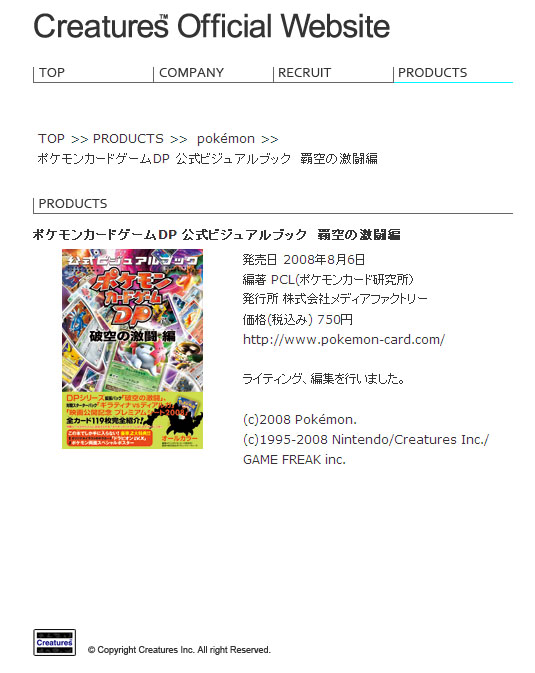 カードリストも絶賛公開中です~! 「ロストリンク」はタイトル通り、ロストゾーンに関する効果を持ったカードが目白押し。 現在の環境に大きく影響しそうなカードも多く、楽しみな半面、既存のカードとの壊れコンボも見受けらたれたり、もうちょっと開発陣も事前調整しろよと。 最近、売り逃げ的な所があるんだよなぁ、公式。 ポケカの環境をどうしたいのかが見えない、なんか中途半端な感が否めない。 ロストゾーン嫌いじゃないです。 積極的に使って行こうという気がある訳じゃないですが、でもロストゾーンと言えば、俺的には「破空の激闘」のギラティナなんですねY・>ノ。。(破空の一撃っ! まあ、ポケカサイトやっている割には、俺がポケカの事を真面目に語るとなんか意外に思われたりするらしいので、話を不真面目な方向に...^^; 最近、自分のPC以外から自分のサイトを見ることが多くなり、見栄えも含めて色々気になる所も出てきたりしています。 自分のPC以外から「覇空の翼」にアクセスする時は、大体検索を利用します。 「覇空」で検索すれば、yahoo!でも、googleでもトップ表示されるので一番手っ取り早いかなと。 2003年8月3日に「覇空の翼」を立ち上げましたが、サイト名の由来と言うのが、羽物愛好家のこだわりで、「翼」とか「空」とかという字を入れたかったんですね。 で、有り触れた単語ではなく、造語にしよう!ということで「覇空」としました。 一応、同じ言葉を使っているサイトや商品などがないか、検索してみたんですよ。 なかったので、go!を出したのですが、今調べてみると....。 「覇空戦記」という書籍がhitします。 発売日をチェックすると、何と2003年8月1日! サイト開設の2日前!! 何と言うタイミング!!! 当時、今みたいに更新してすぐに検索エンジンにヒットするなんてことはなく、気付かなかったのも無理はないのですが、何と言う....。 後は、完全に後出ですが、「ガッシュベルザカードバトル」の「青き覇空の旋律」というタイトルがヒット。あまり関心はありませんが、一応ポケカと同じカードゲームなので、他人事じゃないなと。 で。 ふと気付いた訳ですが、先程も上げた「破空の激闘」。 このエキスパンション名を聞いた時、俺的に「なんて紛らわしい名前を付けたんだ!」と思った訳ですが、検索してみると「覇空の激闘」と勘違いしている人が結構いるのです。 俺自身、結構変換ミスとか多い方で強くは言える立場ではありませんが、掲示板やブログなどに書きこむ際は注意して下さいねー! ...にしてもだ。 「覇空の激闘」....。 この間違いがあまり多いので、調べてみたら http://www.creatures.co.jp/html/products/pokemon/dp_1.html 原因はお前かっ! つか、クリーチャーズって言えば、公式みたいなもんじゃないか!! 大丈夫かよ、おい^^; クリーチャーズと言えばイマクニ?さん、お元気かなぁ。 「ばかぶ~ん」は未だに楽しんでます、はい。 PR TrackbacksTRACKBACK URL : CommentsComment Form |