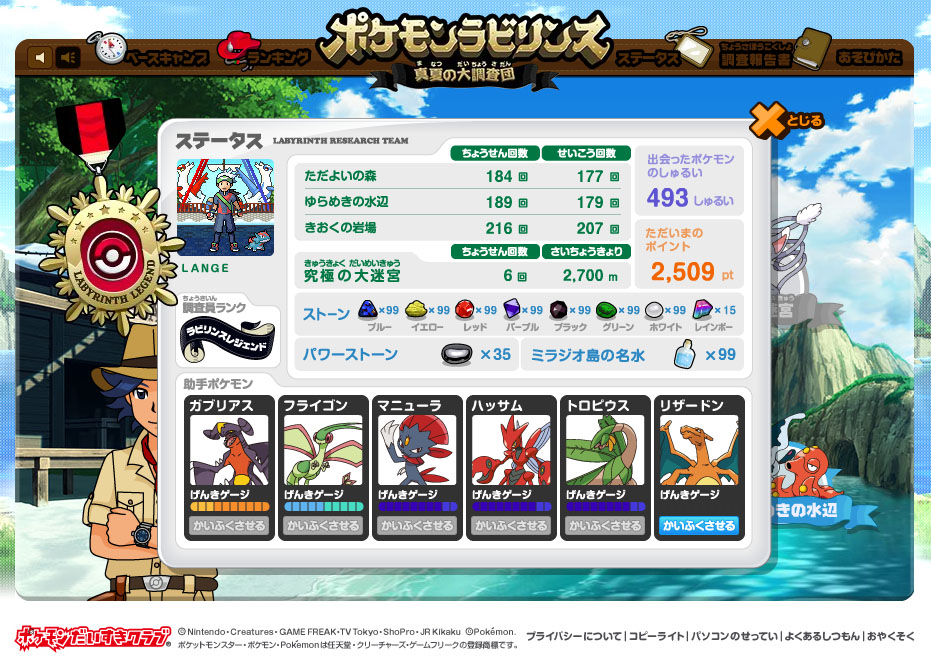 なかなか面白かったです。 ゾロアークとゾロアの親子?愛、いいねぇ。 今回の悪役のコーダイを見てたら、なんとなく「スタートレック ヴォイジャー」のエピソード「29世紀からの警告」を思い出してしまった。 コーダイとスターリングがなんか似てるなぁと。 横浜美術館で「ポーラ美術館展」を見たあと、ポケセン横浜による。 気まぐれで買った「頂上大激突」×2は、特に当たりなし。 近くの椅子で開封してたら、子供に狙われ、しばしトレード。 ついでにポケモン交換も。 ついでにポケカ対戦までやってしまう。 普段、デッキなんて持って歩かないからなぁ。 たまたま持ってて良かった(ダメカンがないのでバトリオで代用する羽目に...) さすがに、大会未経験の小学生相手に本気になるのも大人げないので、サイド1枚まで粘って勝ちは譲る。 いやぁ、パルキアXを2枚だして、リコンストラクションで場を引っかき回して遊ぶ余裕位あるわな。 その後は、別の子とポケモン交換。 強いポケモンくれ!って(^-^; 強いポケモンは自分で育てようよ。 その子の感覚的に、強いポケモン=レベル高いらしくて。 図鑑埋めに、エメで努力値振らないかなり適当にレベル100まで上げたカイオーガを欲しがるので、ポッポと交換(^^; 対戦したいと言うので、萌えパーティで。 つか、あげたばかりのカイオーガ使ってくるなよ! 幾ら適当に育てたって言っても、レベル100だし、やはりそこは伝説。 こちらは、レベル50~70位の、ドラゴン系中心パーティ。 その子のポケモンときたら、カイオーガ以外も全部伝説だし(^^; しかも、フラットバトル拒否ってww まあ、カイオーガにしおみずと冷凍ビームとかみなり覚えさせていた俺が悪い。 育てた子供に逆襲された親の気分。 カイオーガ! 安易に手放してごめんよ! さて。 本日の「ポケモンラビリンス」は? 大迷宮は予告通り、リザードンで。 2350mで終了。 ポケモン全部コンプリートしました 回復床2回で、後は弱点踏みまくりで萎える。 途中で新しいポケモンがいなくなり、コンプした事に気付いた後は、適当にぐるぐる回ってただけだし。 ちなみに、最後の1匹はピジョットでした(^^; 明日は取り敢えず、距離を延ばしてみるかと。 他にやることあるかなぁ? PR TrackbacksTRACKBACK URL : CommentsComment Form |