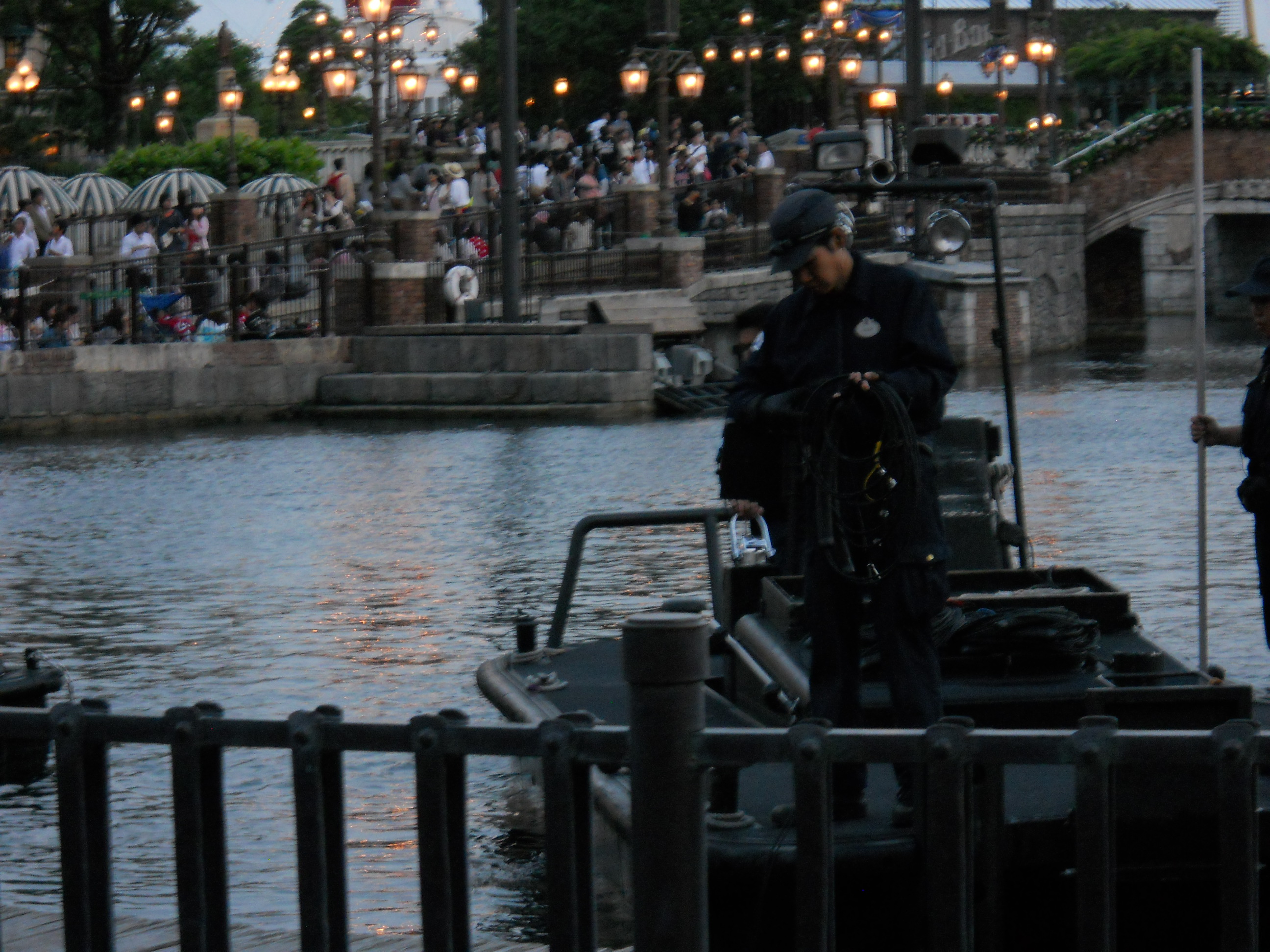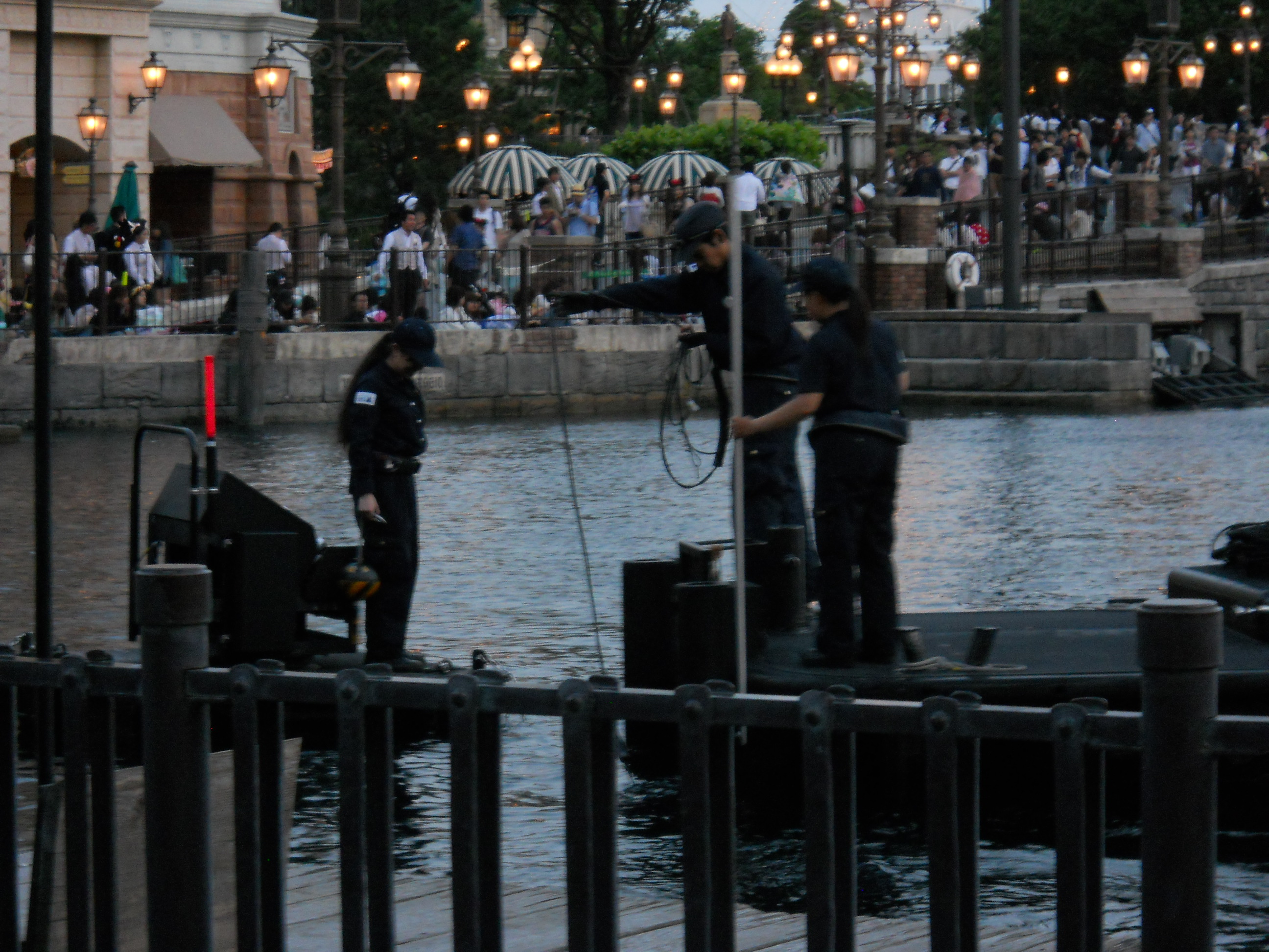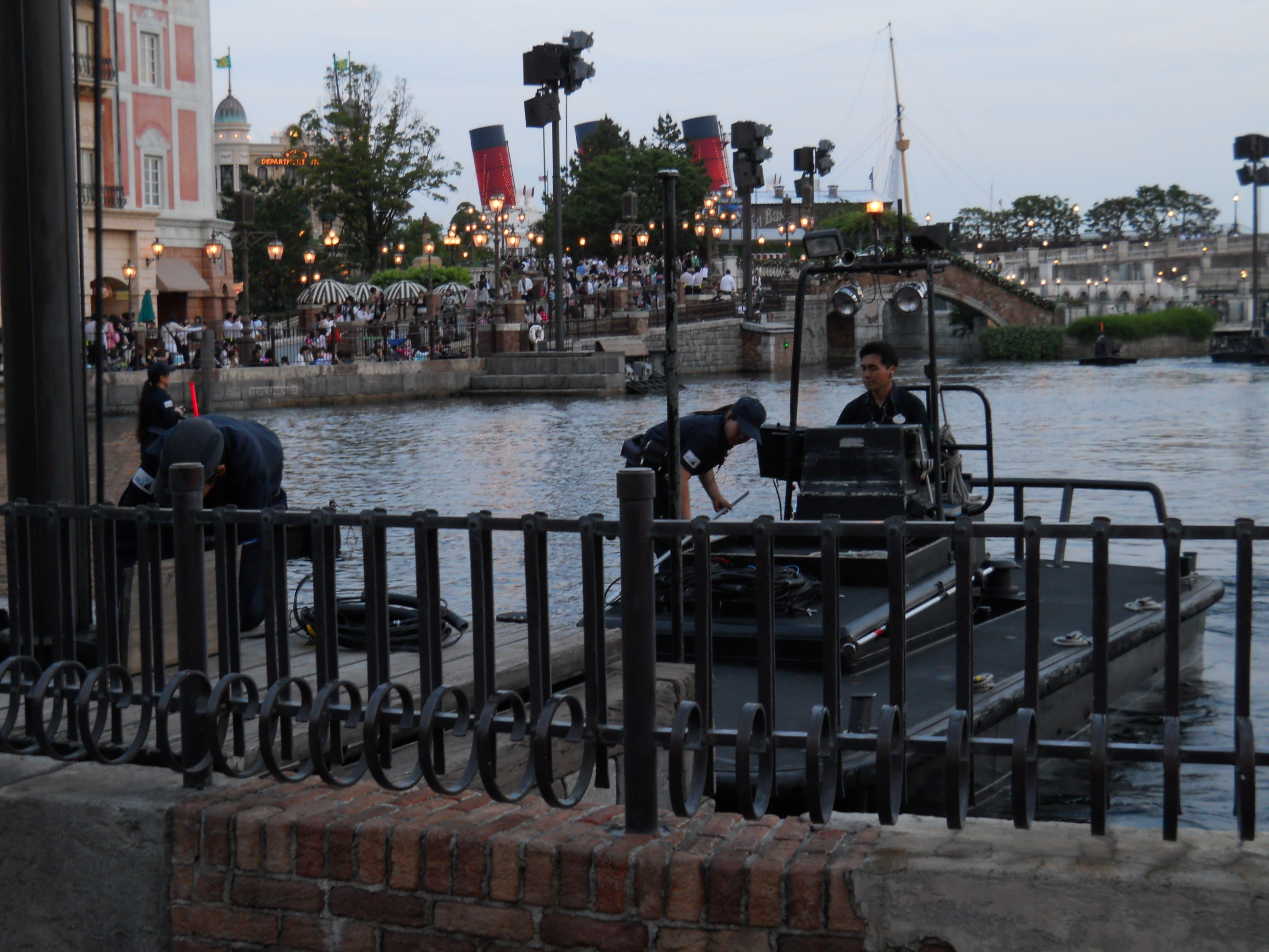 慣れないことやると大変だわ。 さて。熊ショーも観たし、後は「ファンタズミック!」本番まで只管長い待ち時間。 何の苦行ですか!? 「ポルトフィーノ」は低い位置なので、フォートレスのてっぺんよりは風が気にならない感じ。夕方と言う事で、暑さも和らいできたので、これは行けそう。...と思ったら、なんか寒くなって来たぞ!(因みに、この日の俺はファンタのTシャツに薄手のGジャンという出で立ち) TDSは思いっ切り海の近くなので、天気が良くても夜は結構冷えます。夜のショー待ちをしたいなと思った君! 防寒対策はお忘れなく。 たまたまお隣さんが、1人で来ていた男性だったので、声を掛け、いろいろお話していたので、待ち時間は苦にならなかったです。 何時間もショーの場所取り...なんていう人種は、ほぼ常連さんです。年パス持ち率も高いです。なので、結構マニアックに会話が弾みます。 そうこうしている間に、6時半位でしたか。 目の前に人影が...。別に、ハーバーを眺めて黄昏ている訳ではありません。 ファンタ用のスピーカーの準備が始まりました。 俺も混ぜてぇー(おい ハーバーにも、作業用のバージが出て来てます。 女性キャストさんが、棒でハーバーの底と繋がっている鎖を引き上げて、丸い浮を繋いでいます。 余談ですが、ハーバーは結構浅いのです。なので、ミシカの伝説やファンタのソーサラーハットみたいな大規模で重量のある構造物は、船にすると船底がハーバーの底や、水中に仕込んである機構に接触する危険性が出て来ます。なので、バージ(はしけ)形式なんですね。バージだと、重量に耐えられる上、安定性も高く平底なので、こういう特殊な水場でのショーには最適という訳です。 リドアイル側でも、同様の作業中。 これは、ショーで使うパイロの発射装置を準備しているんですね。 大量のパイロを使用するファンタでは、バージや岸からだけでなく、単体の発射装置を配置し、多彩な演出を繰り広げます。 これはパイロの発射装置乗せたバージと言うよりは、ブイですか? 取り敢えず、仮にパイロブイと呼びますね。 女性のキャストさんが乗って作業していますが、小さい為、非常に不安定そうです。 先程丸い浮を付けた鎖で、パイロブイを係留しています。 赤いケミカルライトが装着されているのは、ファンタは暗い中で行われるショーの為、ショー中に水上バイクやバージが接触しないように目印としています。(ショー中の位置の目安としても使ってるかも知れません) 係留が終った頃を見計らって、再び作業用のバージが近付いて来ました。 パイロの発射は、他の様々な機構と連動しているので、確か無線制御だったと思います。 ただ、電源は必要なので、先程のスピーカーの下から取っているようです。 ハーバーの岸壁にも、レーザーの発射装置が隠されていたり、いざ使う時にまで分からないような機構がさり気なく隠されているのが、ディズニーの凄い所。 エリアBGMを流しているスピーカー等も、さり気なく、建物や茂みに隠されていたりするので、探してみるのも面白いですよ。 ミシカの準備で紹介したパイロ発射装置を隠していた樽の様に、普段は雰囲気を演出する装飾・小道具であるのと当時に、ショーや様々な状況で吃驚な役割を果たしたりするんですね。 時間は7時20分位かな? ファンタまでは後30分程。辺りは薄暗くなっています。 パーク内の明かりが、水面に反射して美しいです。 7時40分頃。 メディテレーニアンハーバーにはすっかり夜の帳が降りています。 巨大な船が登場。(船の形はしていますが、これもバージです) これは、場面に併せたセットやウォータースクリーンや、バルーン状のスクリーンを展開してショーを演出する機構としてだけでなく、ダンサーやキャラ達の立つ舞台の役割も果たします。ディレクション・バージと勝手に命名。(ステージ・バージの方がいい?) このバージは、全部で5つあります。 「ファンタズミック!」はアメリカでも上映してますが、ショー専用ではなく、アトラクションで使用している船を利用しています。 さあ、次回は「ファンタズミック!」本番をレポートします。 「バイバイ! また、会おうね!」 ↑これは夜じゃなくて昼間のです(^^; PR CommentsComment Form |