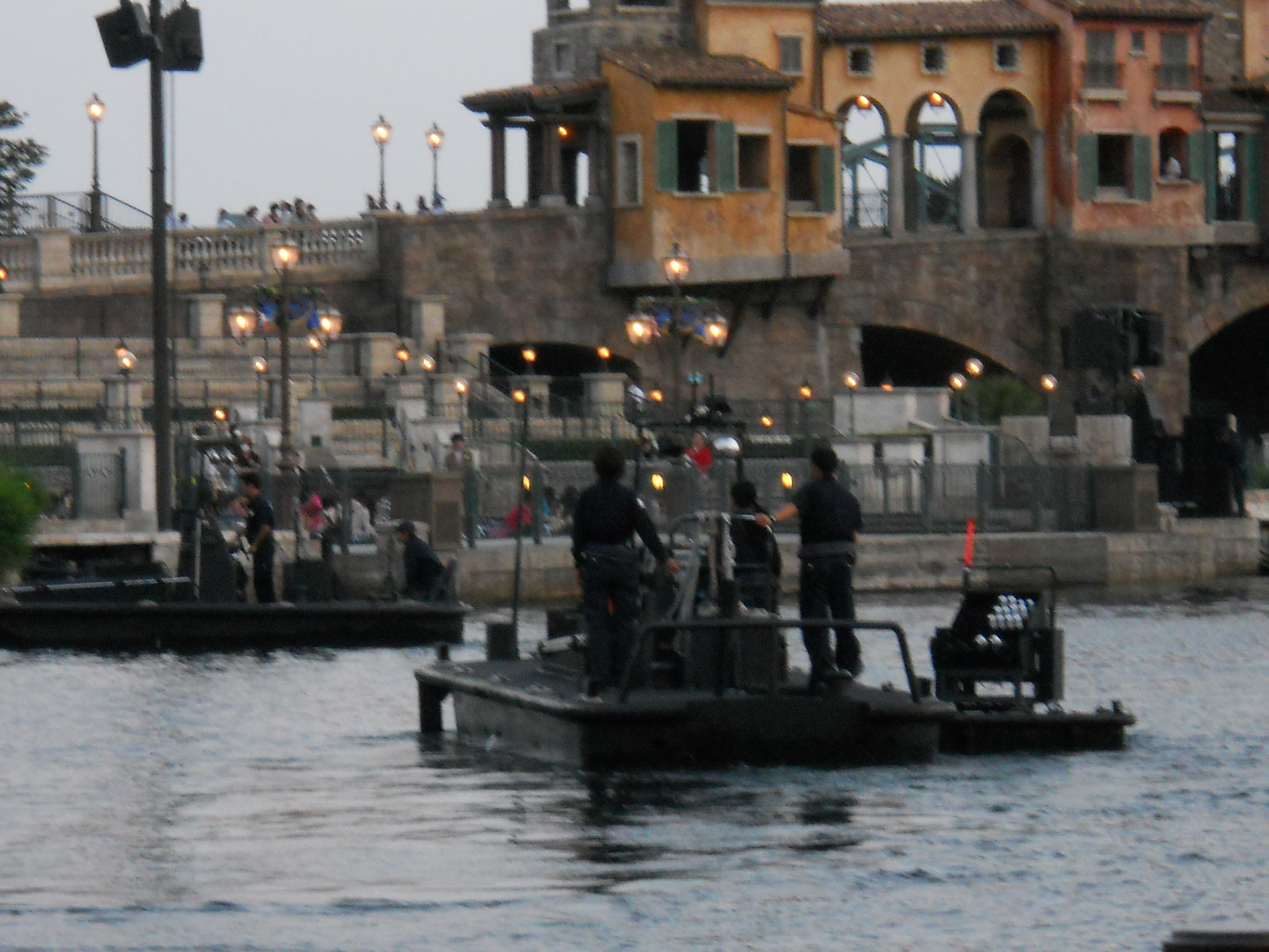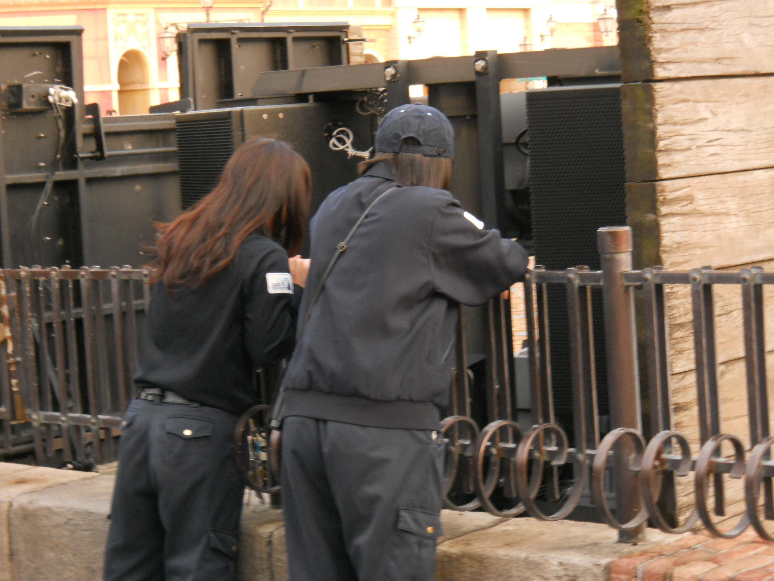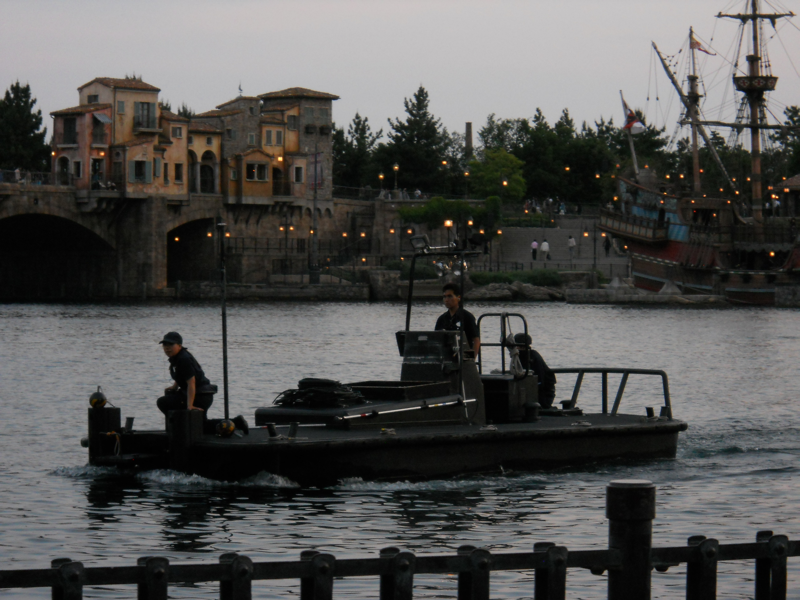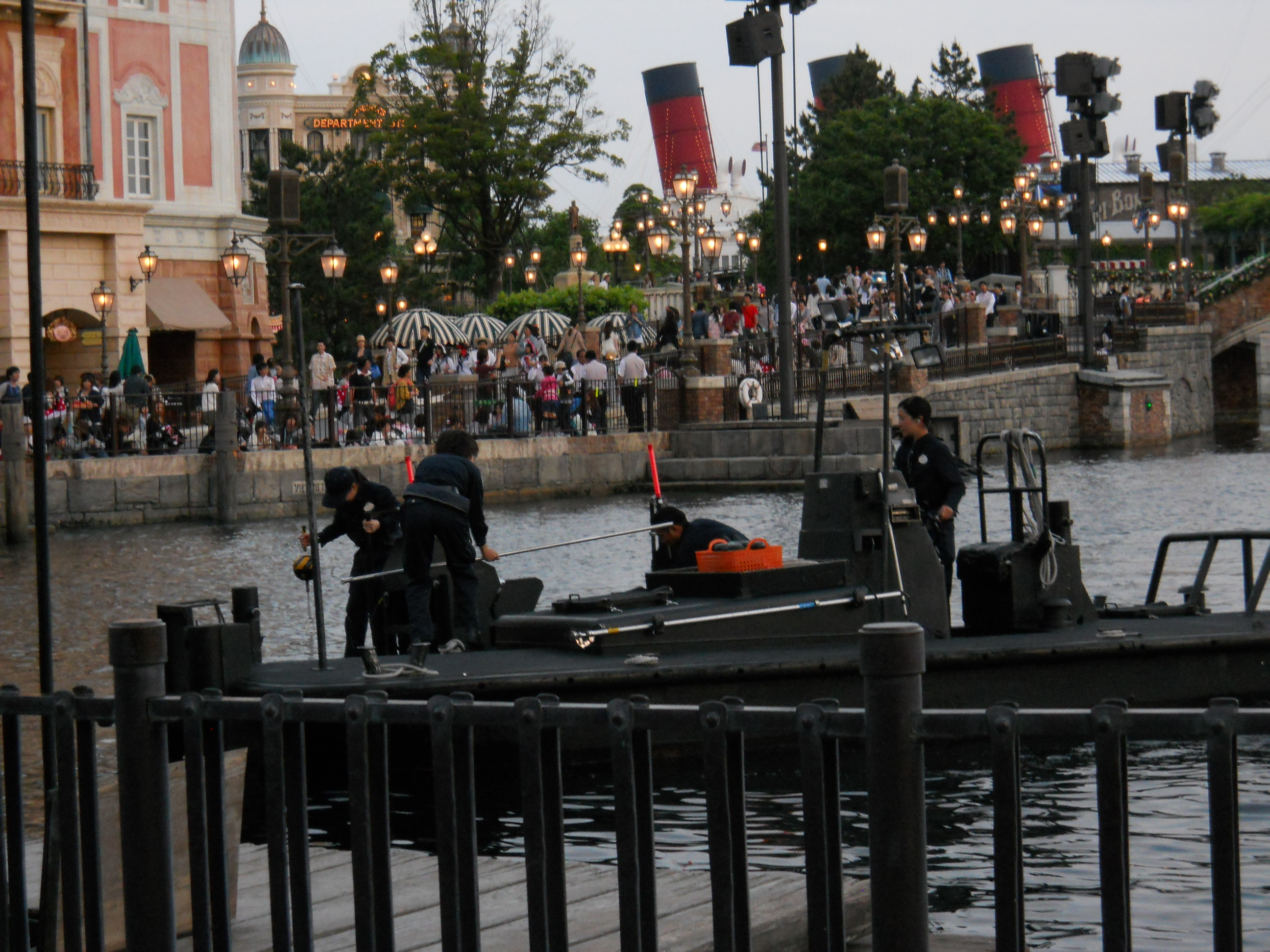 慣れないことやると大変だわ。 さて。熊ショーも観たし、後は「ファンタズミック!」本番まで只管長い待ち時間。 何の苦行ですか!? 「ポルトフィーノ」は低い位置なので、フォートレスのてっぺんよりは風が気にならない感じ。夕方と言う事で、暑さも和らいできたので、これは行けそう。...と思ったら、なんか寒くなって来たぞ!(因みに、この日の俺はファンタのTシャツに薄手のGジャンという出で立ち) TDSは思いっ切り海の近くなので、天気が良くても夜は結構冷えます。夜のショー待ちをしたいなと思った君! 防寒対策はお忘れなく。 たまたまお隣さんが、1人で来ていた男性だったので、声を掛け、いろいろお話していたので、待ち時間は苦にならなかったです。 何時間もショーの場所取り...なんていう人種は、ほぼ常連さんです。年パス持ち率も高いです。なので、結構マニアックに会話が弾みます。 そうこうしている間に、6時半位でしたか。 目の前に人影が...。別に、ハーバーを眺めて黄昏ている訳ではありません。 ファンタ用のスピーカーの準備が始まりました。 俺も混ぜてぇー(おい ハーバーにも、作業用のバージが出て来てます。 女性キャストさんが、棒でハーバーの底と繋がっている鎖を引き上げて、丸い浮を繋いでいます。 余談ですが、ハーバーは結構浅いのです。なので、ミシカの伝説やファンタのソーサラーハットみたいな大規模で重量のある構造物は、船にすると船底がハーバーの底や、水中に仕込んである機構に接触する危険性が出て来ます。なので、バージ(はしけ)形式なんですね。バージだと、重量に耐えられる上、安定性も高く平底なので、こういう特殊な水場でのショーには最適という訳です。 リドアイル側でも、同様の作業中。 これは、ショーで使うパイロの発射装置を準備しているんですね。 大量のパイロを使用するファンタでは、バージや岸からだけでなく、単体の発射装置を配置し、多彩な演出を繰り広げます。 これはパイロの発射装置乗せたバージと言うよりは、ブイですか? 取り敢えず、仮にパイロブイと呼びますね。 女性のキャストさんが乗って作業していますが、小さい為、非常に不安定そうです。 先程丸い浮を付けた鎖で、パイロブイを係留しています。 赤いケミカルライトが装着されているのは、ファンタは暗い中で行われるショーの為、ショー中に水上バイクやバージが接触しないように目印としています。(ショー中の位置の目安としても使ってるかも知れません) 係留が終った頃を見計らって、再び作業用のバージが近付いて来ました。 パイロの発射は、他の様々な機構と連動しているので、確か無線制御だったと思います。 ただ、電源は必要なので、先程のスピーカーの下から取っているようです。 ハーバーの岸壁にも、レーザーの発射装置が隠されていたり、いざ使う時にまで分からないような機構がさり気なく隠されているのが、ディズニーの凄い所。 エリアBGMを流しているスピーカー等も、さり気なく、建物や茂みに隠されていたりするので、探してみるのも面白いですよ。 ミシカの準備で紹介したパイロ発射装置を隠していた樽の様に、普段は雰囲気を演出する装飾・小道具であるのと当時に、ショーや様々な状況で吃驚な役割を果たしたりするんですね。 時間は7時20分位かな? ファンタまでは後30分程。辺りは薄暗くなっています。 パーク内の明かりが、水面に反射して美しいです。 7時40分頃。 メディテレーニアンハーバーにはすっかり夜の帳が降りています。 巨大な船が登場。(船の形はしていますが、これもバージです) これは、場面に併せたセットやウォータースクリーンや、バルーン状のスクリーンを展開してショーを演出する機構としてだけでなく、ダンサーやキャラ達の立つ舞台の役割も果たします。ディレクション・バージと勝手に命名。(ステージ・バージの方がいい?) このバージは、全部で5つあります。 「ファンタズミック!」はアメリカでも上映してますが、ショー専用ではなく、アトラクションで使用している船を利用しています。 さあ、次回は「ファンタズミック!」本番をレポートします。 「バイバイ! また、会おうね!」 ↑これは夜じゃなくて昼間のです(^^; PR CommentsComment Form |