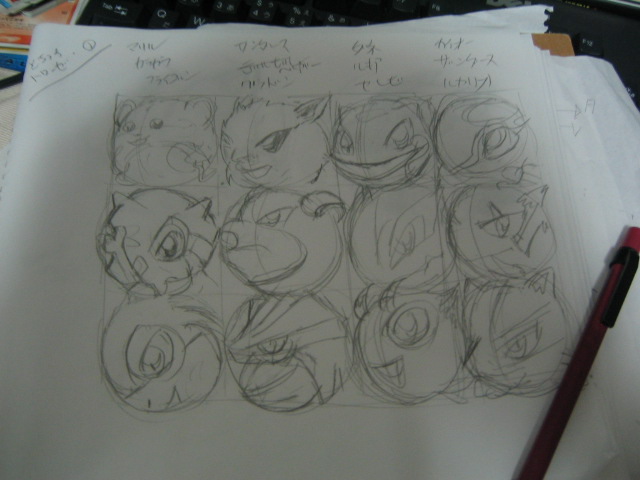 ゲンナリしながらもメールチェックをしていると、以前イベントで振ってあった、「とちっ子」のHPが5000hitしたら記念画贈呈...のリクエストが...。 おお、これは何を差し置いても取り掛からねばっ! 2案のうち、メンバーのマスコット的なポケを、あの「ポケモントローゼ」風に...というのが面白そう。 「ポケモントローゼ」といえば、丸っこくアレンジされたポケモン達が可愛いわけで、あの可愛さは捨て難いな。 ただ、面白そうとは言っても、私はどちらかというと可愛い系のイラストが得意ではないのだ。 悩むことしばし。 資料があまりないし、敢えて見ないのもいいかな。 トローゼはどちらかというと、ポケモンを円の中に収めている感じだと思うので、それを球にして、立体的な感じにしてみたらどうだろう? 手がイマイチ不調なので、マウスより負担が軽い、鉛筆で簡単なスケッチを数枚描いて見る。 あまり可愛くならないなぁ(^^; 取り敢えず、15分位で描いた荒描きなので、後はポケモン別に可愛さと立体感を如何にして出すか、煮詰めてみようと思う。 PR TrackbacksTRACKBACK URL : Commentsとろ~ぜとろ~ぜ♪Posted by リック 2006/08/29(Tue) 01:01:39 EDIT メール見ていただき、ありがとうございます。