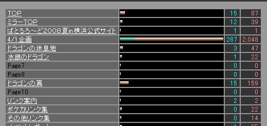 別なネタを考えていたのですが、時間的に準備が間に合わず、急遽、思いつきで作った企画です。 総製作時間は4時間。最後は慌ててメッセにいたメンバーに動作チェックを依頼するなど、かなりぎりぎりでした。 ちょっと難しすぎたようですね。 お陰で、TOPページ(メニュー)が、覇空の翼始まって以来といっていい最低アクセス数を記録しました。 ミラーをのぞくTOPのアクセス数は...。 15って... 正解を知っている俺と関係者を5名程除くと、10名!? リンク先をチェックしつつ進めれば結構行けちゃうんですが、しっかりステータスバーを消してゴールで来た人は実際何人だったのか気になるところです。 それにしても。 企画限定TOPページのアクセス数は普段の平均よりちょっと多いくらいなんですが、ページビューが物凄いことになっている...。 気の利く人はカウンターやらなんやらを企画限定ページに貼り替えるなんて器用なことをしちゃうんだろうな^^ そんな器用さはありませんし、アクセス数確保の為にサイトを運営しているわけでもなし。その辺は自分自身楽しめないとと思うこの頃です。 だましネタではありませんが、迷わせて本当にごめんなさい。 現在は通常営業中です。 チェックし忘れて何をやっていたのか気になる...という方の為に、回答ページと共に、しばらくTOPの方にリンクを張っておきますので、もうしばらく迷ってみて下さい。 2009.04.01 Wed 20:09:56 ポケモン覇空の探検隊 特別ダンジョン本日限定配信中です^^ また、わけのわからんことを始めるへたれ管理人です。 今日だけなので、笑って許して! だましネタは去年の「亜空の翼」で痛い目にあったので、騙す・嘘ではなく、遊んでもらおうという指向です。 本気でやると、メインメニューまでの入口まで結構かかります。 途中、罠で覇空のコンテンツに飛ぶ場合がありますので、目的のページたまたま飛んだらそのままご利用できますが、ページ内の「戻る」リンクでTOPに戻ると、再びダンジョンに突入してしまいますのでご注意下さい。 ポケモン関係を中心とした外部サイトに飛んでしまう場合もありますが、この機会に色々覗いて見てほしいなと思っています。 ちなみに、どうしてもゴールが分からない! という方は、ページのどこかに本日のみ限定のTOPページのアドレスが隠してあります。 また、ミラーサイトは通常通り運営しておりますので、お急ぎの方はそちらをご利用ください。 もしかして、とりあえず、本日はニュース・リスト等の更新はありません。 本日限定なので、ぜひ遊んでやって下さい。 |
