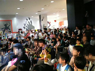 新・ドラゴン騙りのシャーマン(だから違ryLANGEの完全気まぐれブログです。内容も気まぐれ。更新も気まぐれ。PAGE | 34 35 36 37 38 39 40 41 42 43 44 | ADMIN | WRITE 2008.07.06 Sun 23:10:31 試写会オフで感謝するでし!?という訳で、先日予告したとおり、劇場版ポケットモンスター ダイヤモンド・パール「ギラティナと氷空の花束 シェイミ」の試写会に行って参りました。 朝、10時位に中野駅に到着。 既に来ていたセルゲイ氏と合流し、会場の中野サンプラザへ。 会場前 もう、列が出来ているじゃないか! 早々に、係りの案内で列の最後尾に並ぶが、炎天下。 暑いっ>< しかし、係りの人の話では、11時に座席指定券引き換え受付を開始するとのこと。 兎に角暑いので、並んでいた子供達も耐え兼ねて、親を残して日陰に避難していたりして。 前方列の様子。 セルゲイ氏と、ネタで盛り上がりつつ、受付時間を待つこと1時間。 受付開始! 比較的早めに並んだ事もあり、席は1桁列の中央ブロックと、いい感じでした。 思ったより早く席を確保できたので、思ったより時間が空いてしまうが、後から合流組の√さんが早めに到着したので、3人で会場から5分くらいのところにあるおもちゃ屋で、バトリオをプレイ。 なんだかんだしているうちに、後から合流組との待ち合わせの12時。 中野駅に迎えに行くと、疑惑たんが到着している。 電車の都合で若干遅れたTさん(事情により伏せます)とも合流し、後は午前中の所用の為にもう少し送れるダネグロ氏に会場で合流する形にし、会場前に戻る。 会場前で待っていると、暫くしてダネグロ氏到着。 まだ入場列が出来始めた頃で、殆ど先頭付近に並ぶ。 入場すると、会場の入り口には、映画の垂れ幕やピカチュウの巨大バルーンがお出迎え。 座席券の確認と引き換えに、小学館の封筒を頂く。 (中には、入場者プレゼントのシェイミのバトリオ&ギラティナのカード&シールがセットになった物と、各種チラシやアンケートなどが入っている) ロビーには、記念撮影用の映画のディスプレイや、主催が小学館だけに、小学館発行の書籍の販売コーナーも。 早速場内に入り、席に陣取る。 また、専属名カメラマンこと疑惑たんに撮影を依頼。場内の様子などを撮っていただきました。 (もちろん、上映中は撮影はなしです) また、今回上映会場で受け取れるシェイミのデータも入手。 さて。 注目の試写会の内容は!? まずは舞台挨拶。 テレ東アナウンサーの方(名前は失念)が司会で、ピカチュウとシェイミのきぐるみが登場。 足の短いシェイミは歩くのが大変そう(^^; 続いて、ゲスト登場。 湯山監督、サトシ役の松本梨香さん、ムゲン役の山寺宏一さん、レイラ役の南明奈さん、ポケモンサンデーでおなじみのゴルゴ所長とレッド博士、主題歌を歌うクリスタル・ケイさん。 各ゲストへの簡単なインタビューの後、クリスタル・ケイさんが映画主題歌「ONE」を歌う。 歌の後は、再びゲストさんが登場し、CM用の撮影なども。 ここで30分の休憩を挟み、映画本編の上映がスタート。 映画の感想としては、去年が納得が行かなかったので、実の所期待してなかったんですね。 しかし、予想を裏切る出来だったと思います。 映像の美しさも見所ですが、やはりストーリーがしっかりしていることと、スピード感のある流れ、前作の補足もされていたことも評価できると思いました。 終演後は、ネタ撮影会!? 皆が持参したもふもふドールが勢ぞろい。 ...て! ギラティナとディアルガは分かる。 しかし、おまけのラティアスは置いておいて、今回出演のないパルキア率の高さはなんだ!? 時間的に帰らないといけないダネグロス氏と別れ、残りのメンバーで駅近くのファーストフード店で映画の感想やねたで盛り上がる。 その後、付近の商店街をブラブラして解散。 のはずが、Tさんと疑惑たんと共に、Tさん最寄駅近くにあるスーパーへ。 何をする気かというと、もらったばかりのシェイミのパックを今の筐体(バトリオ+)で読み込ませるとどうなるか!? の実験(^^; 結果、やはり読み込みはされませんでした。 シェイミのパック特有の要素はともかく、スキャン位は出来るかなと思ったけど、本体の方に対応するデータがなかったようだ。 やはり、5弾稼動後ですね。 皆さんも、真似しないように...。 そんなこんななポケモン試写会オフ。 映画の全国公開は2週間後の19日になりますが、今回はもう1~2回は確実に行く気がしてならない。 PR 2008.07.03 Thu 23:49:06 そろそろポケモン映画の季節ですギラたんを見るためだけに、今年も映画のチケットを買ってしまった俺。